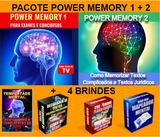 POWER MEMORY 1 para exames e concursosPOWER MEMORY 2 para textos complicadosBRINDES